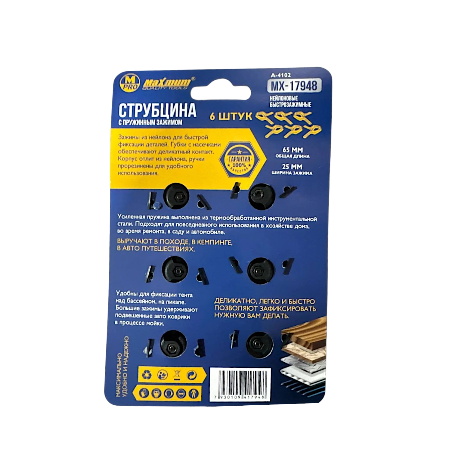 Струбцина автоматическая F-образная 150×35 мм, 6", с фиксатором и кнопкой сброса, "MAXIMUM" MX 18105