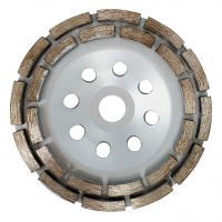 Чашка алмазная шлифовальная изготовлена из высокоуглеродистой стали. Диаметр шлифовальный чашки составляет 150 мм, посадочный диаметр – 22 мм. Чашка алмазная шлифовальная двурядная — это надежный, качественный и долговечный инструмент для профессионального использования.